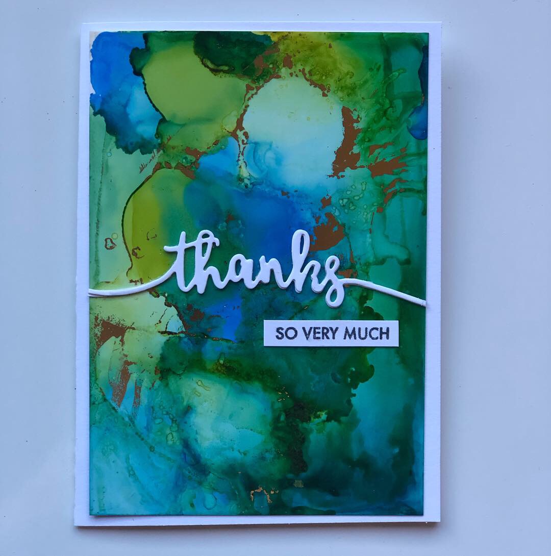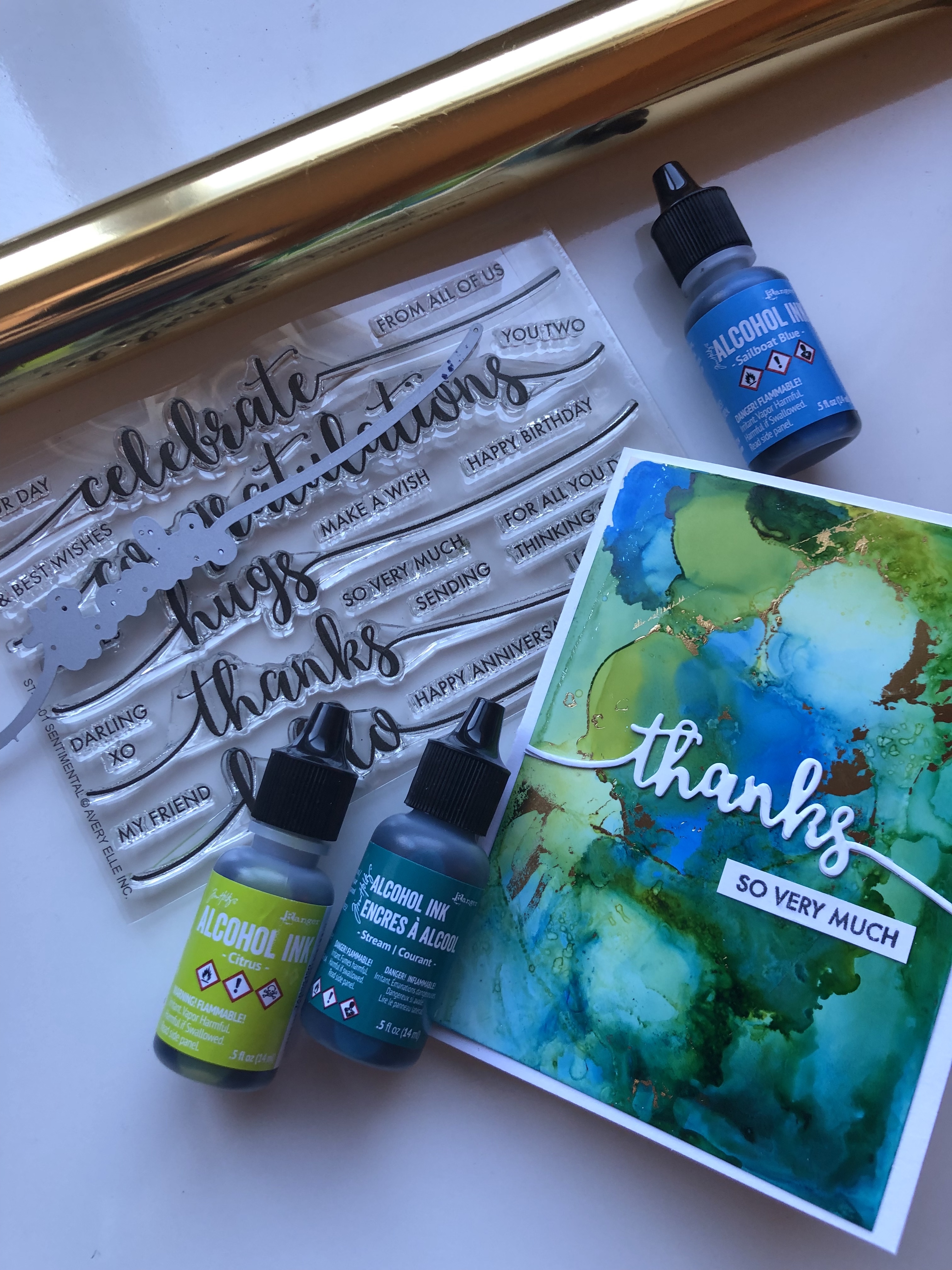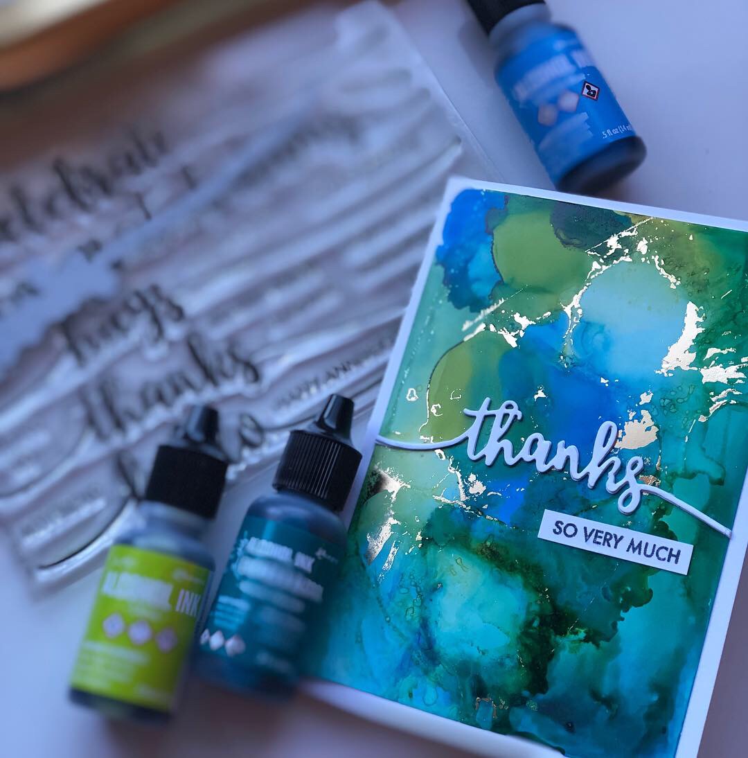 Hi everyone, today I’m sharing a thank you card I made with Ranger Inks and spruced it up with some gold foil. No laminator needed — this technique was super easy.